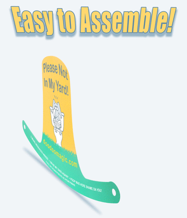 Pre-cut signs and Anchor Tees snap out of packaging. Insert the tee thru the flap holes then press into your lawn!